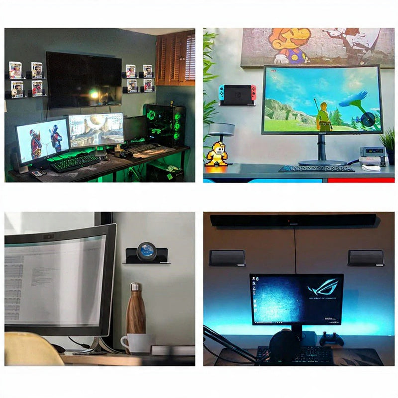 Modern floating shelves are crafted from high-quality acrylic for a sleek and decorative look. Each shelf installs easily with strong adhesive tape that supports up to 8 lbs, offering reliable storage without drilling. Arrange side by side or in custom layouts to create 18 inches of versatile wall space.