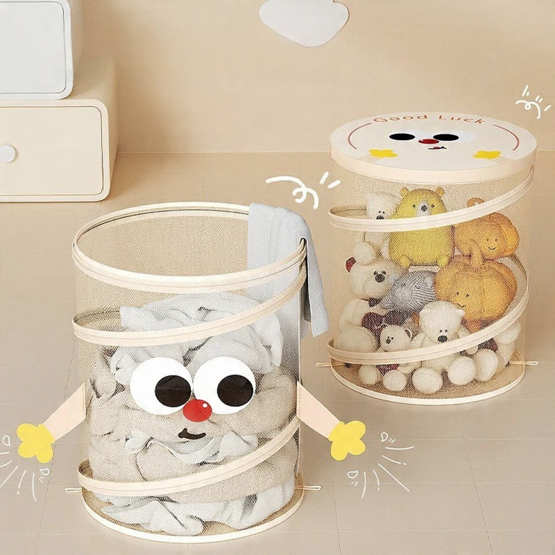 Keep clutter out of sight with this foldable mesh storage basket. Designed with a lid for neat organization, it’s perfect for storing toys, clothes, books, or even small household items lightweight, breathable, and easy to move around.