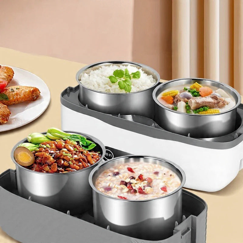 • Feature: Double-layer heating with sealed lids for spill-free carrying